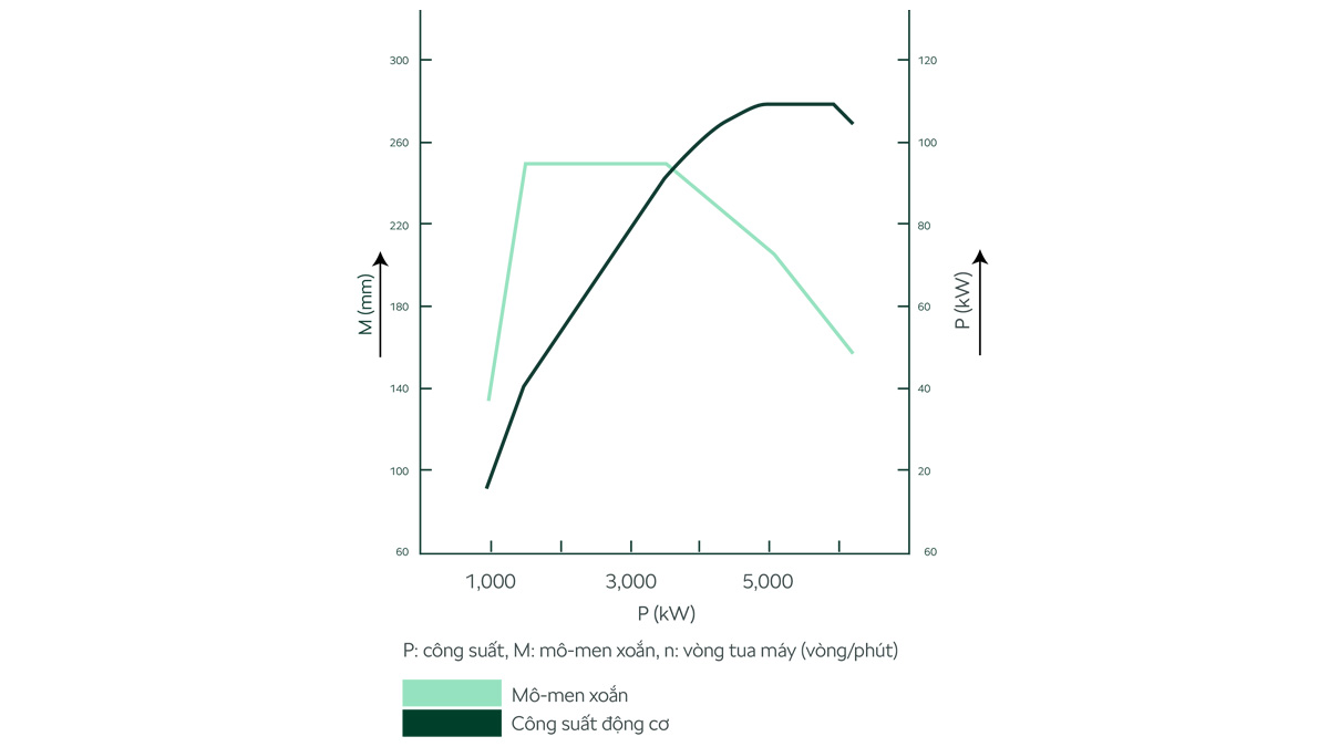 Biểu đồ công suất và mô-men xoắn: Mô-men xoắn cực đại (nM): 250 /1500-3500. Công suất tối đa 150 Ps và mô men xoắn cực đại 250 Nm tại dải vòng tua thấp giúp đem lại cảm giác vận hành mạnh mẽ, bền bỉ.